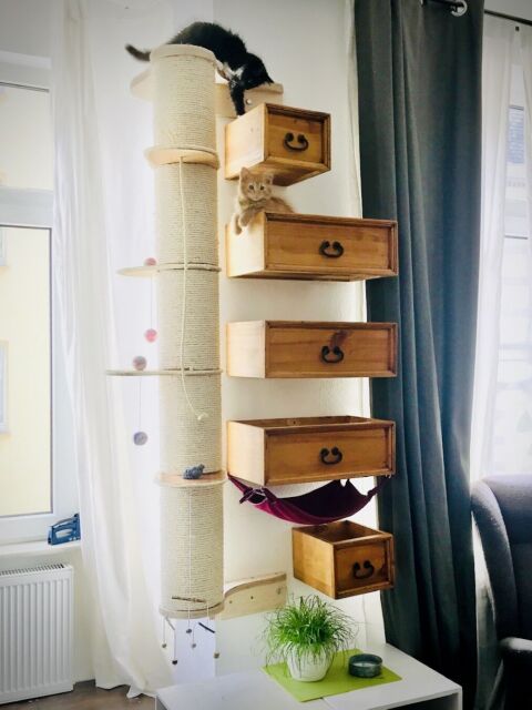Hier die erste Version unseres Schubladen-Klettermöbels für Stubentiger. #photography #myphoto #cats #catsofmastodon #catsoffediverse #pets #catfurniture #caturday
