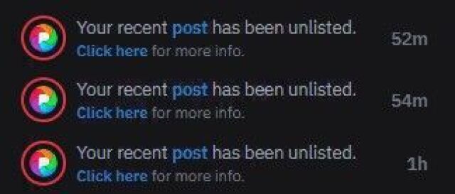 Could someone please tell me what I'm doing wrong or what's happening? I just have one post on my profile, and it is still there. Nothing got deleted today. Yesterday however two posts and my profile picture suddenly disapeared. Today Pixelfed tells me three post are "unlisted", but I don't know why and it doesn't even seem to be true: nothing changed today. The links "post" and "click here for more info" don't work. Is this because of massive influx and overheated servers, maybe?