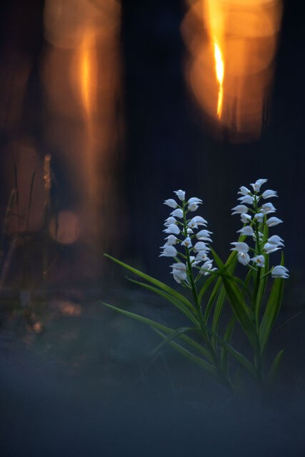Schwertblättriges Waldvöglein - Cephalanthera longifolia - sword-leaved helleborine, Gotland, Sverige In einigen der gotländischen Kiefernwälder stehen diese Orchideen in großer Zahl. Hier eine Aufnahme aus Mai 2023 aus einem sehr mückenhaltigen Wald in Ufernähe zu Sonnenuntergang. #natur #nature #naturephotography #macro #makro #macrophotography #makrofotografie #orchid #wildflower