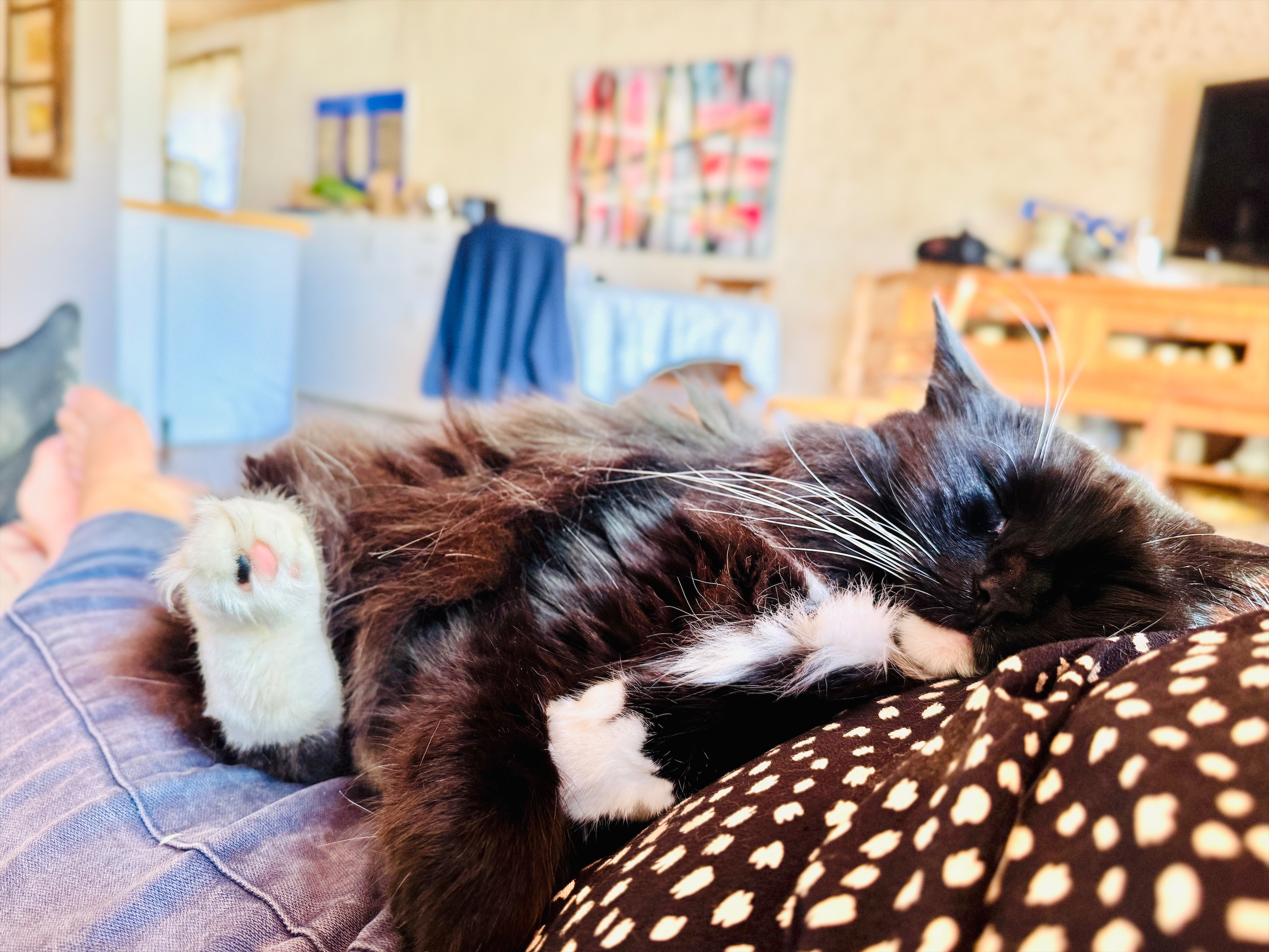 @freischnauze 😻 Der eine von uns liegt bei dem drückenden Wetter lieber bei einer leichten Brise auf dem Katzenbalkon , der andere hat sich auf die kühlen Fliesen verzogen 🥰