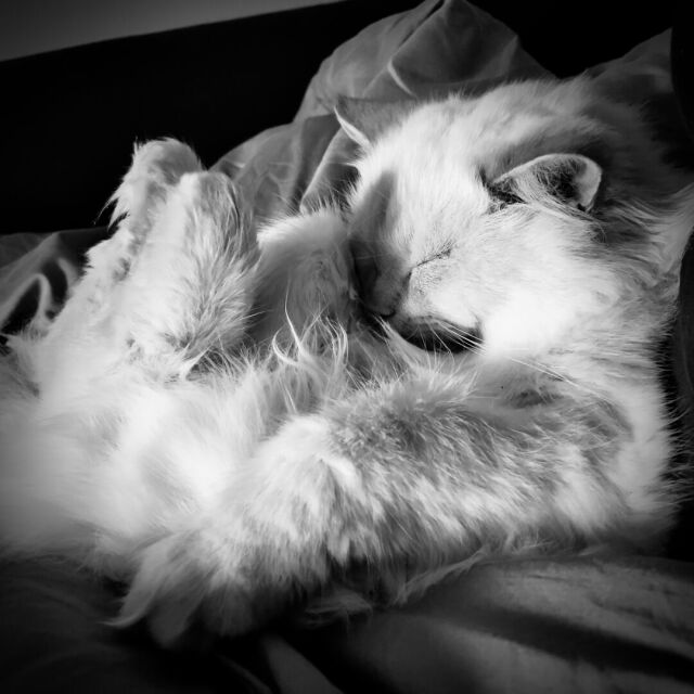 Ein Päckchen Flausch mit Ohren #photography #myphoto #blackandwhite #blackandwhitephotography #cats #catsodmastodon #catsoffediverse #catcontent