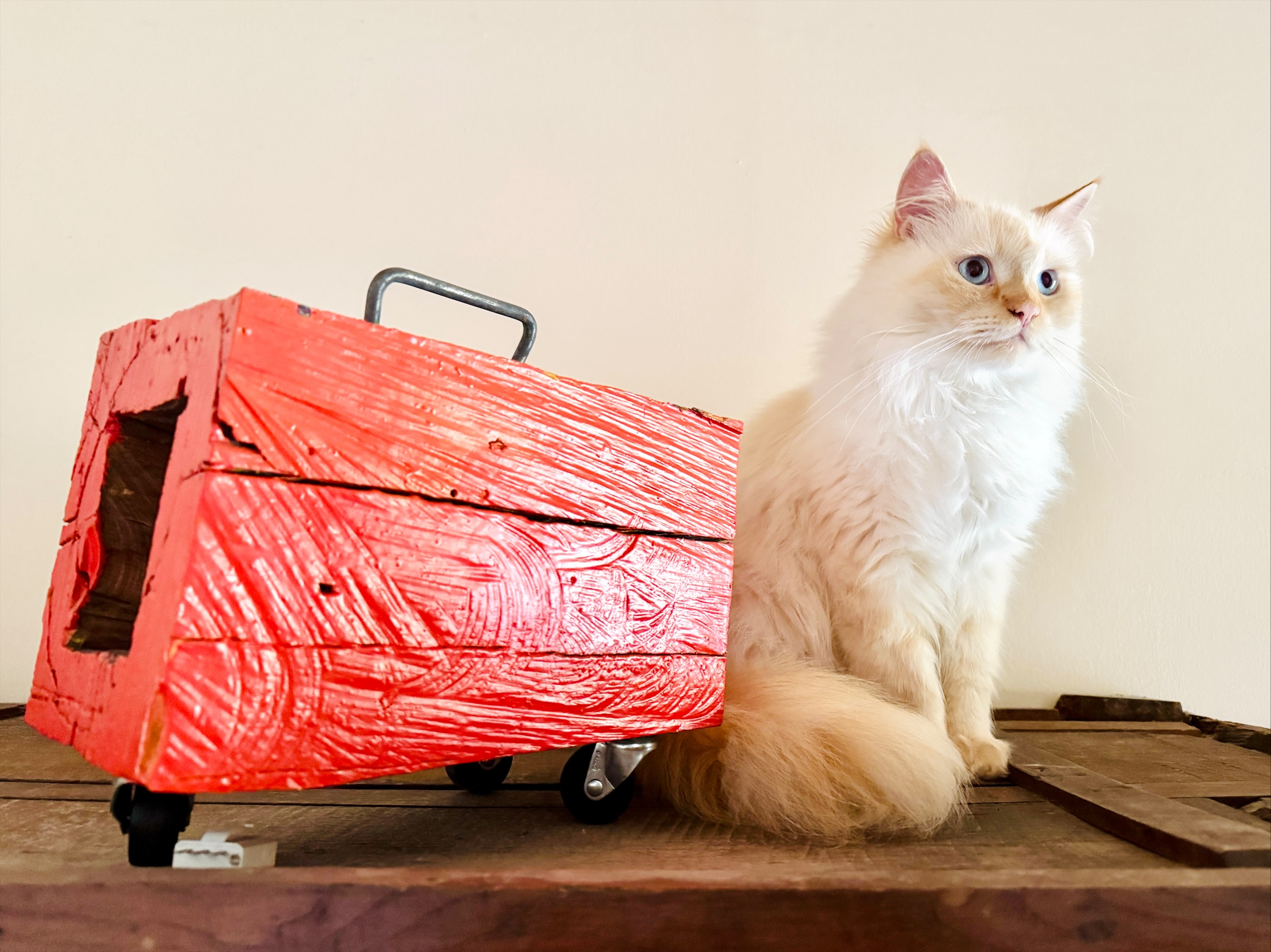 Katze und ein Koffer Kunst (von Maruen https://www.maruen-art.com/boutique/) #photography #myphoto #cats #catsofmastodon #catsoffediverse #pets #art