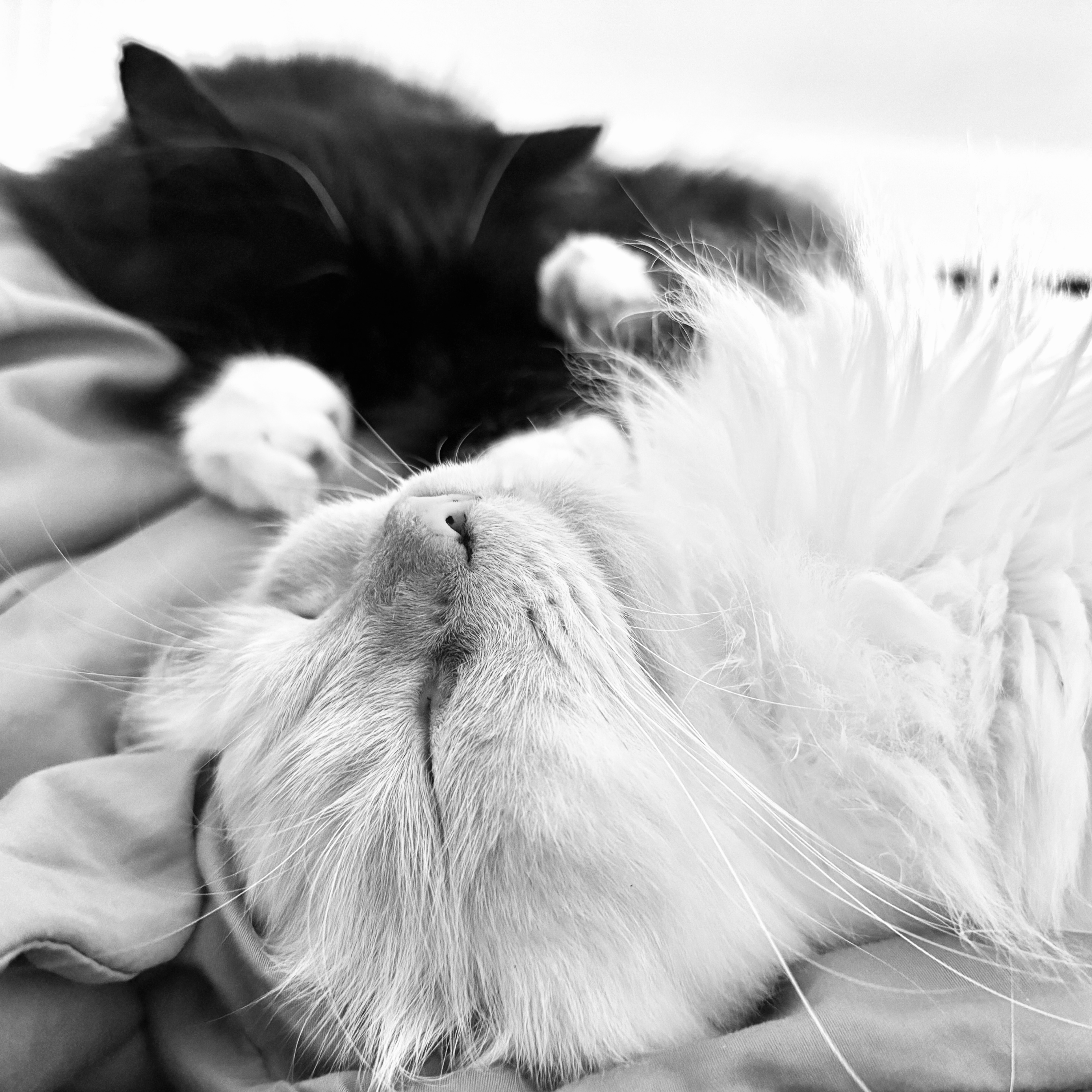 Katzenkuschelhaufen 😻 #photography #myphoto #blackandwhite #blackandwhitephotography #monocrome #cats #pets #catsoffediverse #catsofmastodon #katzen #haustiere #schlafend #kuschelig #ruhe #nähe #freundschaft #sleepingcats #relax #cozy #peaceful #monochromephoto #everydayiscaturday
