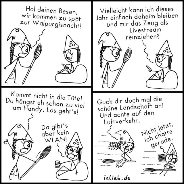 Walpurgisnacht ist die Nacht vom 30. April auf den 1. Mai. Aber ich denke mir, ich sollte den Comic schon etwas früher hochladen, damit ihr alle eine faire Chance habt, ihn rechtzeitig zu lesen, während ihr auf euren Besenstielen durch die Pampa düst.