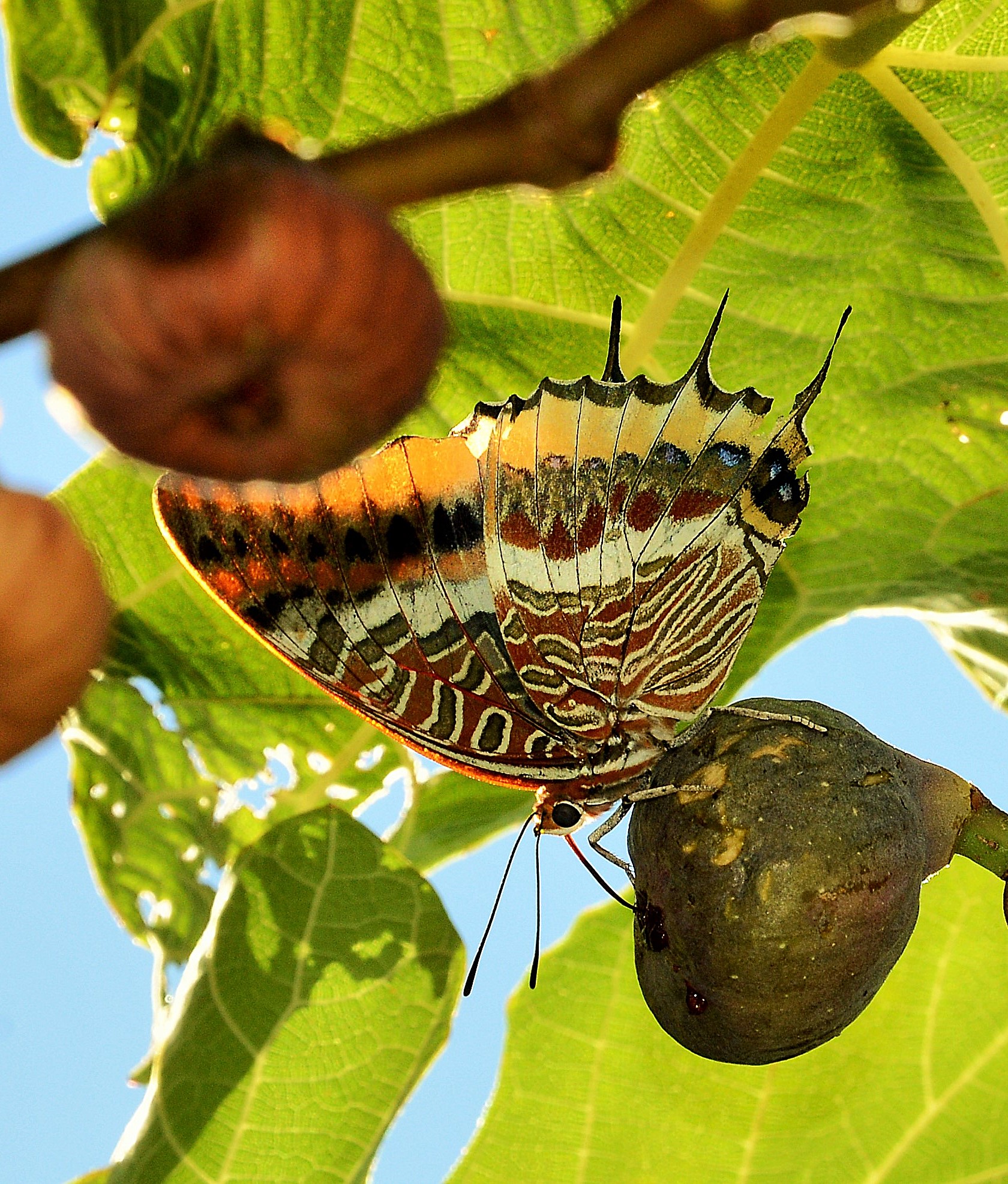 Headfirst on the now ripe figs, the beautifully marked Charaxes jasius (in German: Erdbeerbaumfalter / no English term available). #myphoto