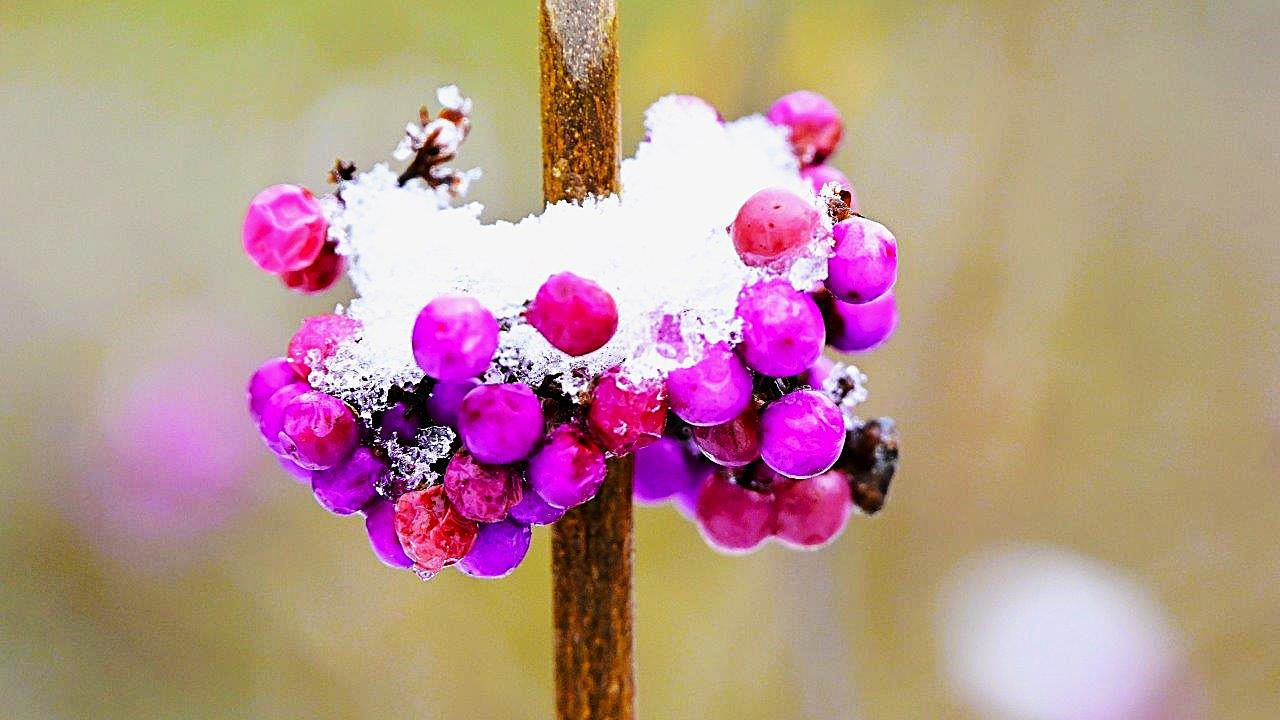 A lot of color even in winter: Liebesperlenstrauch (Callicarpa bodinieri) with a snow cap (not sure about the English name). #myphoto